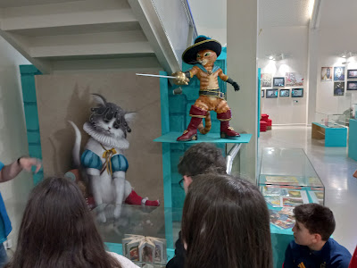 En la visita guiada pudimos contemplar ejemplares de épocas pasadas de los famosos cuentos procedentes de colecciones privadas, así como escenas recreadas en el museo con los protagonistas de esos relatos: la casa de la abuelita de Caperucita, el taller de Geppeto, padre de Pinocho..., comprobamos la evolución de los tipos de ilustración a lo largo del tiempo...