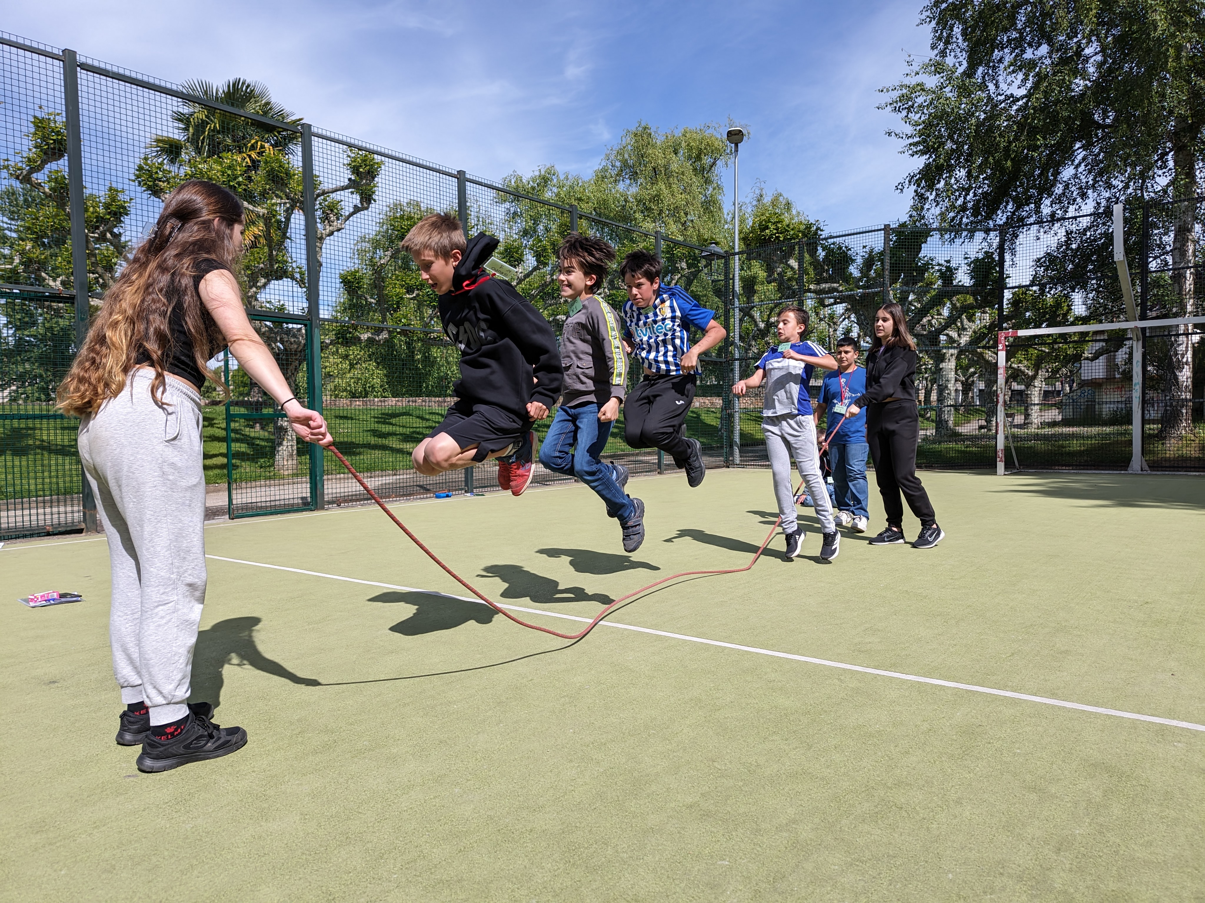 Nuestras chicas de 3º de la ESO de la Sección Bilingüe actuaron como excelentes guías de cada grupo, capitaneando la actividad y poniendo en práctica todo lo que han aprendido en inglés. El uso del idioma extranjero fue de forma continuada, en un contexto divertido y diferente, así los alumnos pudieron poner en práctica su conocimiento del idioma y aprender a superar los miedos de hablar en inglés fuera del aula.
